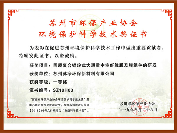 蘇州環保產業協會一等獎